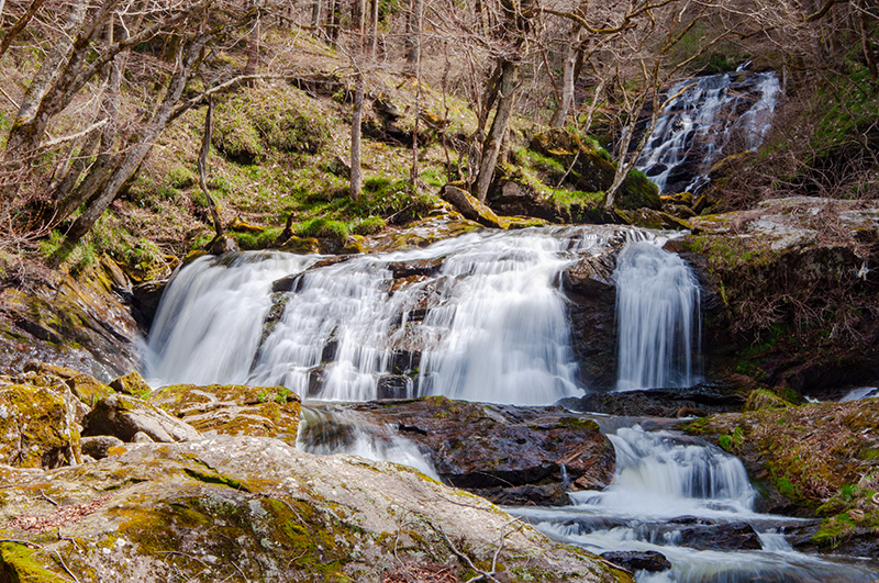 二見ヶ滝はそのうちの主瀑である幅広な滝。車道の終点から真正面に見える。上部に見えているのはそうめんの滝。