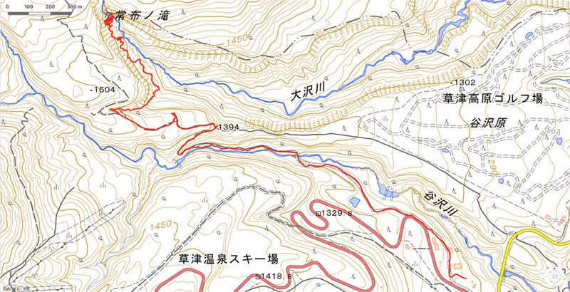 草津温泉近くにある秘瀑。一時的に滝壺までの道が整備されるも、すぐに崩壊して通行止めに。