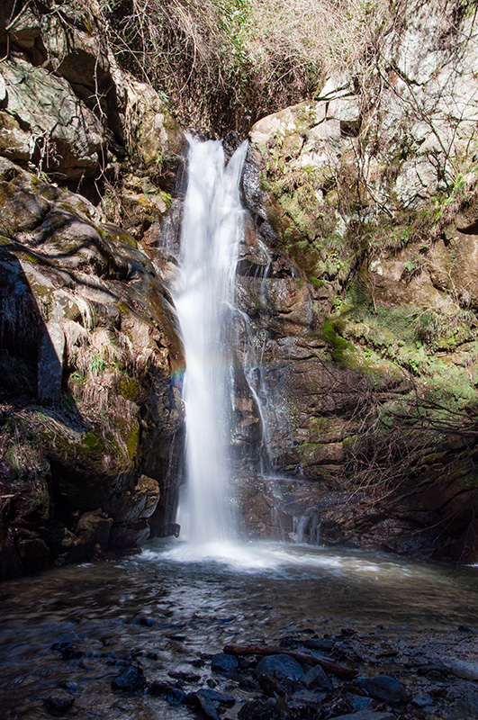 路肩の広い場所に車を停め、案内に従って歩道を歩いていくと10分弱で到着。真横に不動堂が立っている。
