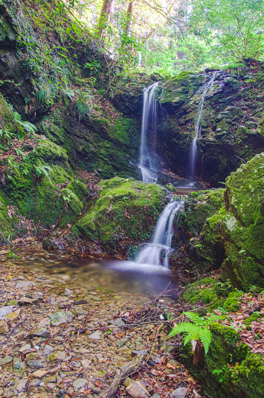 八王子城跡にある滝。3段になって流れ落ちるが水量は少ない。八王子城落城の際、この滝で婦女子や武将が自刃したと伝わる。