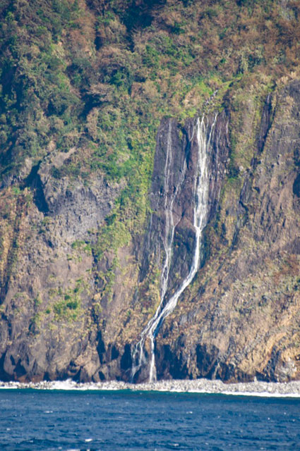 御蔵島で一番有名な滝。潜流瀑で海へ落下している。