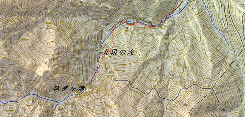 滝まではハイキングコースがあるが、整備されているのは九段の滝前の観瀑台までで、かなりの遠望になる。滝壺へのルートは観瀑台すぐ手前の「精進ヶ滝→」道標から左へ続く踏跡をたどり沢を徒渉、その後は赤テープと踏跡を頼りに進むが、やや危険な箇所もあるので、それなりの装備を整えて入ること。また、滝をかける崖は、数年おきに姿を変えるほど崩落しているので、滝下では要注意。